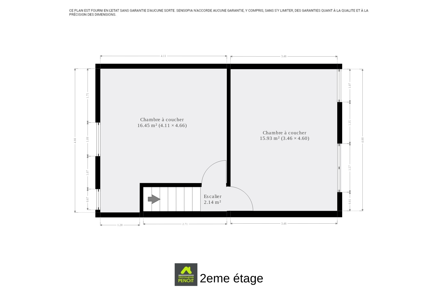 | Chambre 2 (surface) | 16 m² |