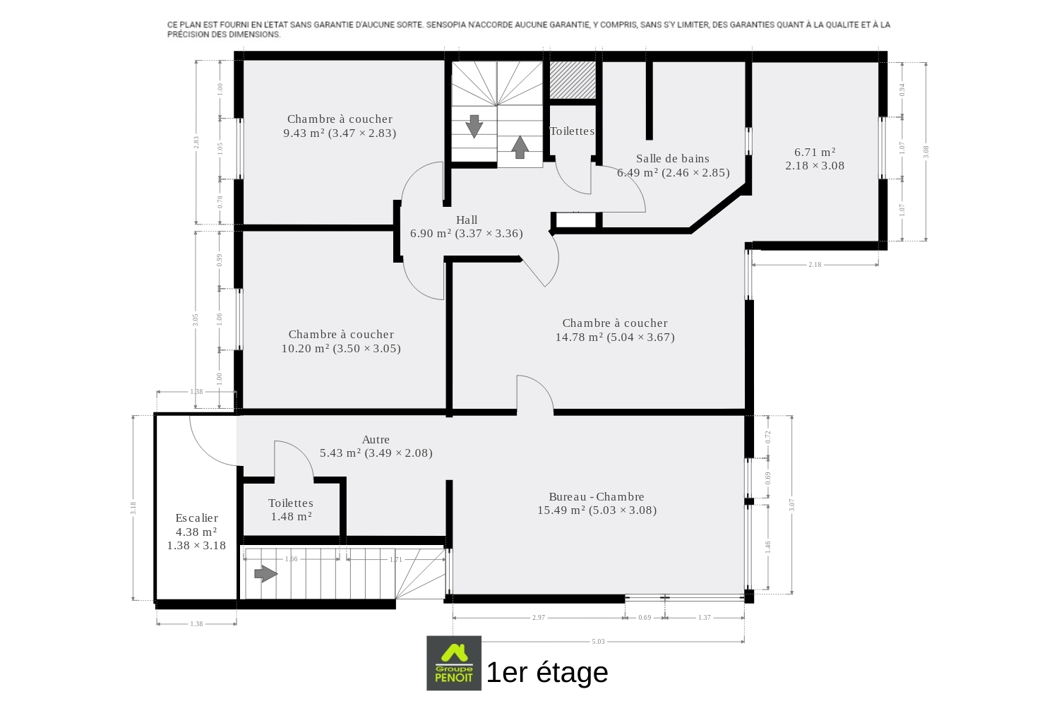| Chambre 3 (surface) | 14 m² |